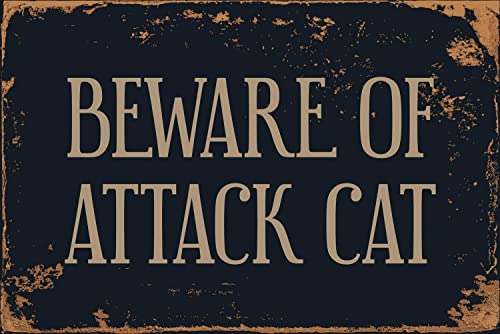 Yard Sign Plaque for Business, Garage, Office, House and Outdoors Beware Of Attack Cat 8″ x 12″ Vintage Aluminum Retro Metal Sign VS459