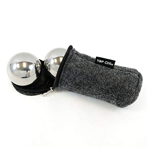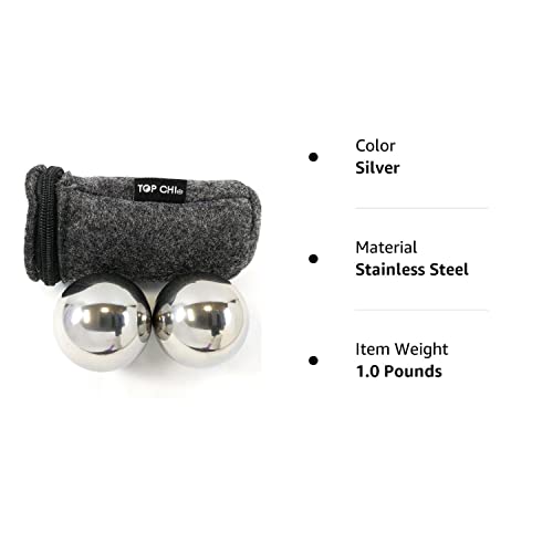 1 lb. 1.5 Inch Solid Stainless Steel Baoding Balls with Carry Pouch. Non-Chiming Chinese Health Balls for Hand Therapy, Exercise, and Stress Relief