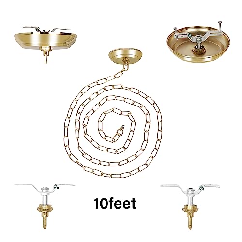 10 Feet Heavy Duty Gold Chain with 5″ Light Canopy Kit for Chandelier, Swag Light Kit Light Fixture Mounting Bracket for Hanging Light,L0019