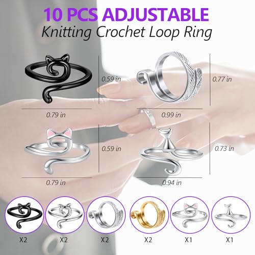 10 PCS Adjustable Knitting Crochet Loop Ring,6 Styles Finger Yarn Guide,Yarn Guide Crochet Ring,Metal Open Beginner Knitting Crocheting Gift,for Crocheting Knitting Accessories
