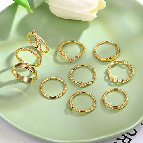 - 💗Gold Rings Set: This gold ring set is 14k real gold plated, made of environmentally friendly alloy, free of lead and nickel, and hypoallergenic.You don’t have to worry about rusting or causing skin discomfort; the high-quality gold plating can always keep the original, the color will not fade; it will bring you a better wearing experience.