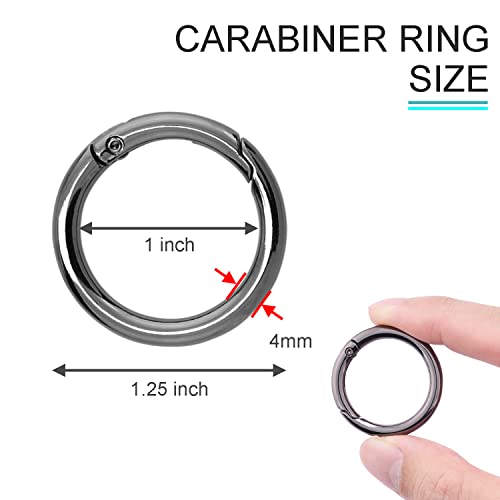 10Pack 1 Inch Metal Spring O Rings Clip Keychain, Round Carabiner Clips Keyrings Snap Hook Buckle, Purse Shoulder Bag Chain Rings Clip Replacement Paracord Keychain Lanyard Leather DIY Crafts (Black)