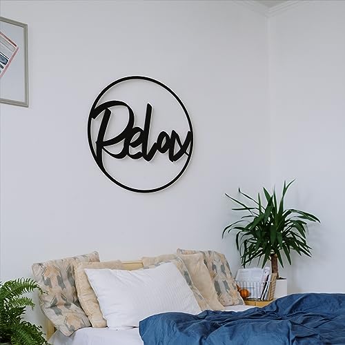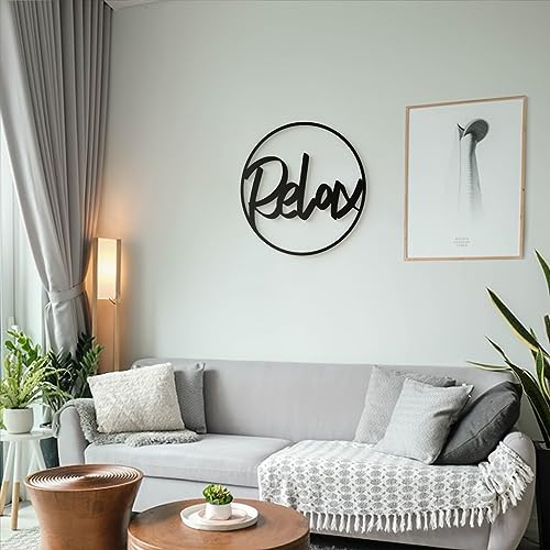 11″Metal Sign For Home Wall Decorate Black Signage Letters Art Wall Decor Plaque Hanging House Apartment Decor Wall Signs Famous Letter Signs (Relax)