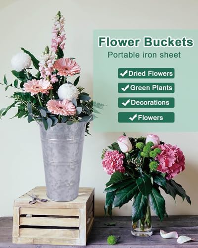 - 【Sturdy Material】The bucket is made of galvanized metal with an anti-rust coating. Lightweight but not thin, sturdy and durable. Not easily fade, can be used for a long time. Great for outdoor and indoor.