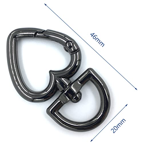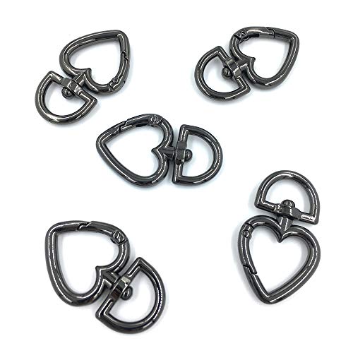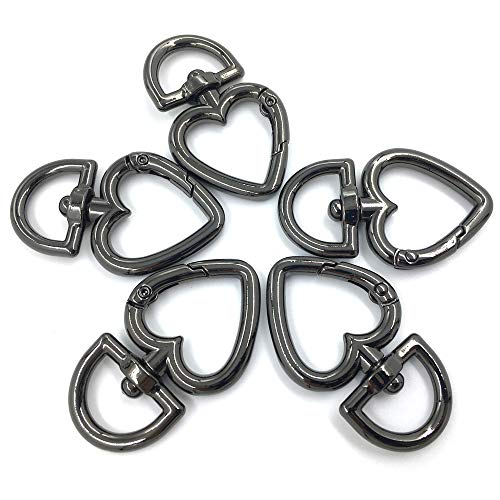 12 Pcs 3/4 Inch Outside Width Zinc Alloy Heart Shape Swivel Buckles Trigger Spring Keyring Buckle, Clasps Hooks Keychain Ring Buckles Shinning Swivel Snap Fashion Clips (Gunmetal)