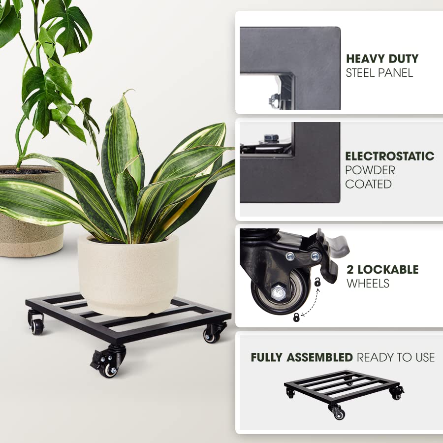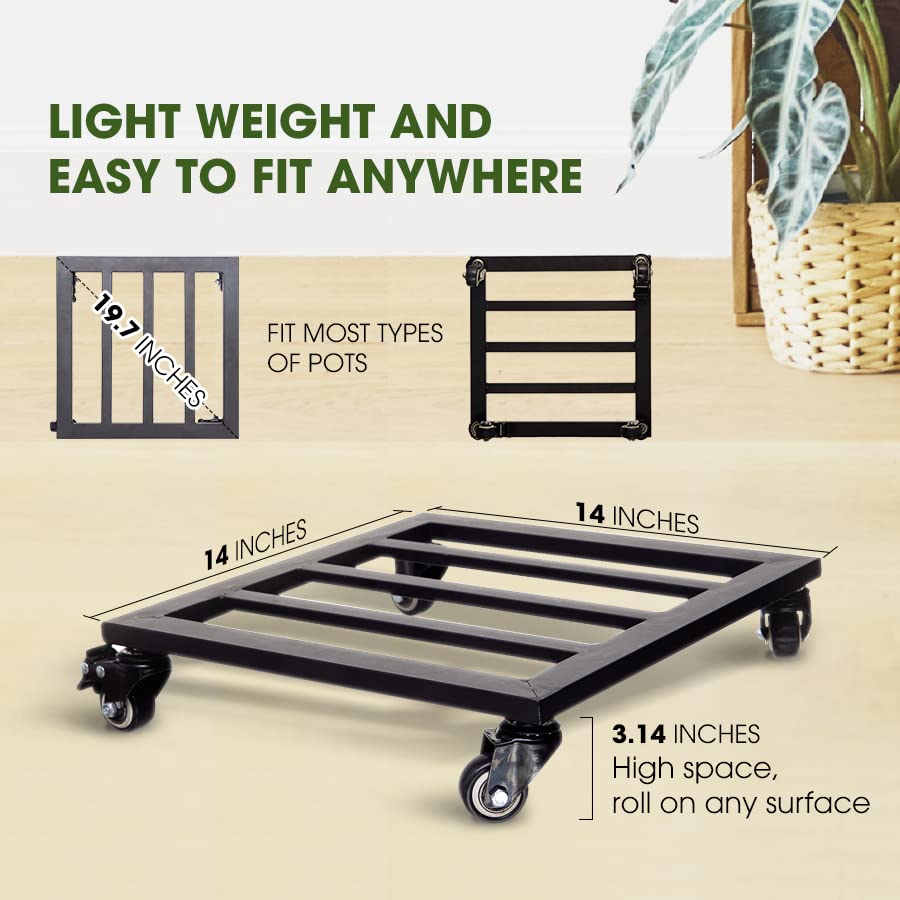 - ELECTROSTATIC SPRAY POWDER COATED: The rustproof, water resilient, and weather resistant matte coated makes the plant roller base more durable under any prolonged exposure to harsh environmental conditions. Our rolling plant caddy also reduces waste due to the modern electrostatic spraying technology.