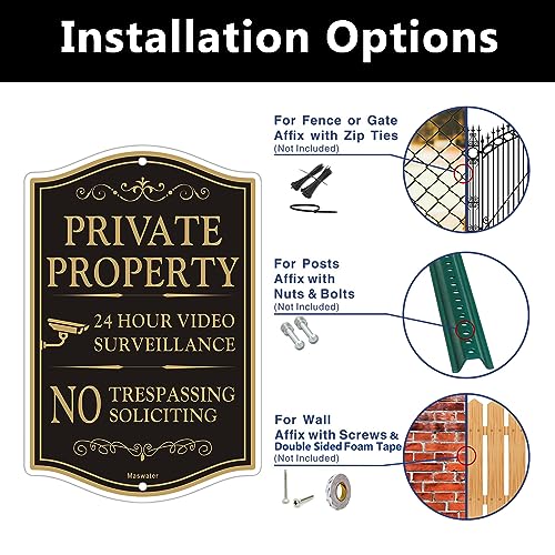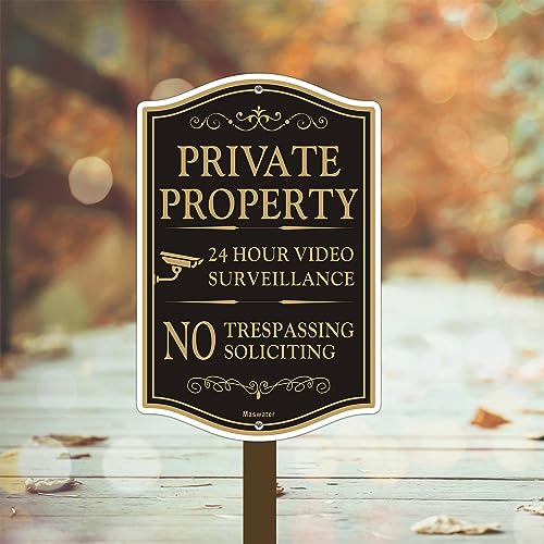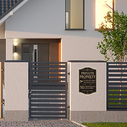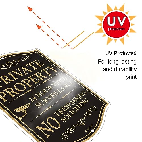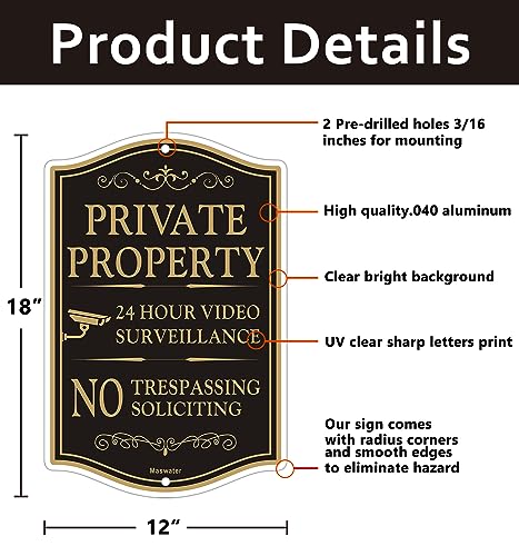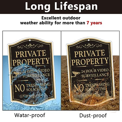 2-Pack Large Private Property No Trespassing Sign, 12″ x 18″ 24 Hour Video Surveillance No Soliciting Yard Signs, Rust Free Aluminum, Fade Resistant, Waterproof & UV Protected