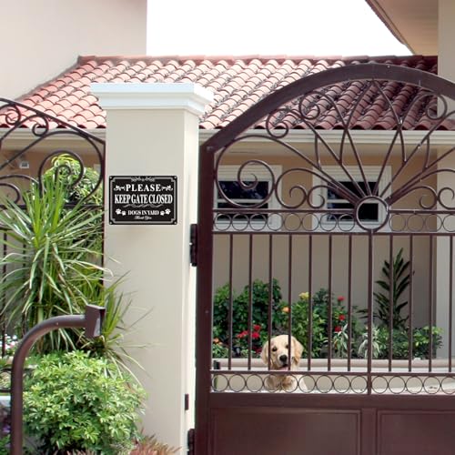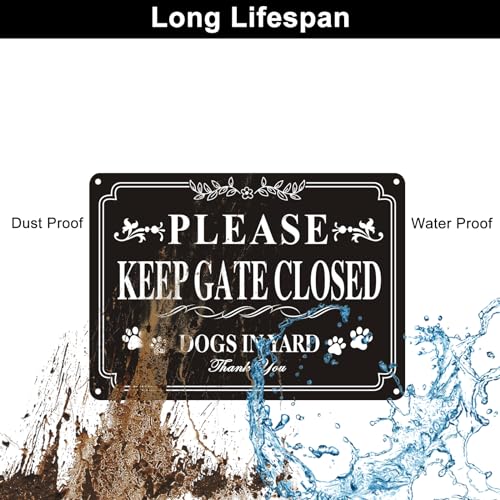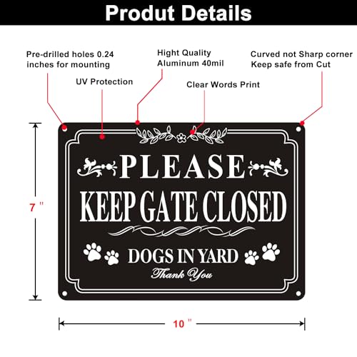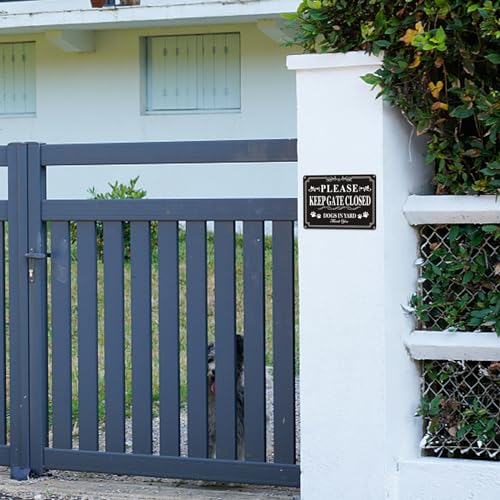 2 Pack Please Keep Gate Closed Sign, 7 * 10 Inch Rust Free Metal Sign,UV Protected, Weatherproof Warning Dog Sign for Door or Gate