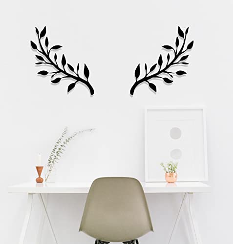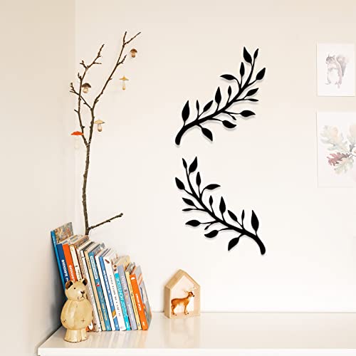 2 Pieces Metal Tree Leaf Wall Décor Branch Leaf Wall Art for Indoor Outdoor Garden Home Bedroom Living Room Decorations (Black)