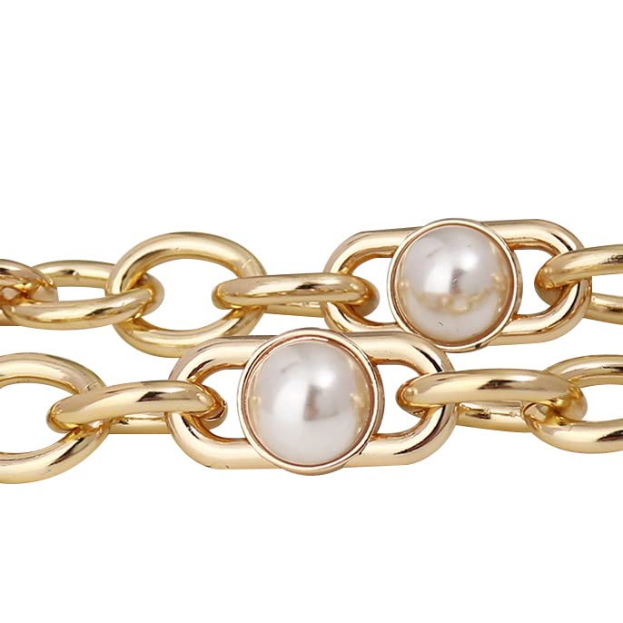 - · 【Material】: This handbag replacement handle straps made by nickel-plated metal, feels smooth, durable and shiny, not easy to fade, rust or break in long term using! The ABS pearls are embedded in the metal chain, which is more chic and elegant, the beads won’t scatter or fall off easily.