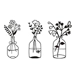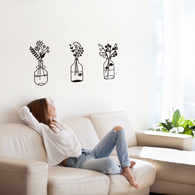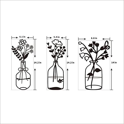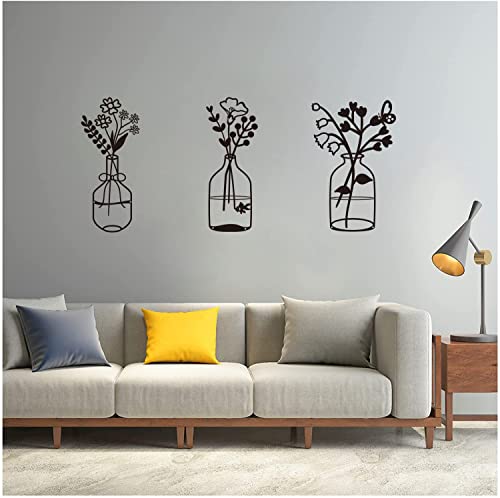 3 Pcs Black Metal Flowers Wall Decor Metal Vase Wall Art Metal Wall Sculptures Hanging for Indoor Kitchen Bathroom Bedroom living room Halloween Thanksgiving Christmas Gifts