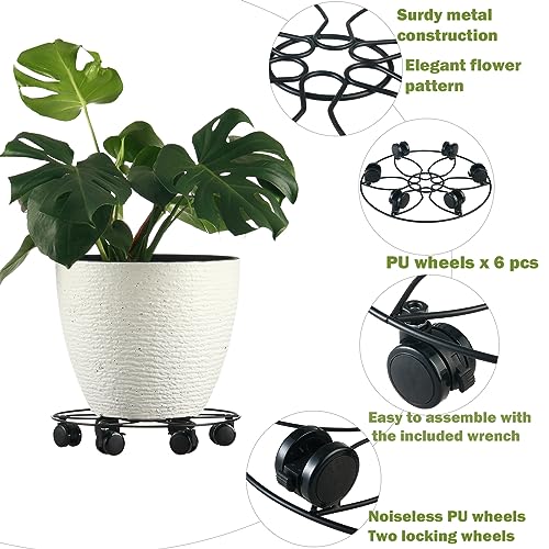 - Sturdy metal construction: Each of the large plant caddy was made from strengthening metal, with strong hardness and toughness for long-lasting performance. No aging and non-fade. Great to hold your large plant pots and roll easily from indoor to outdoor.