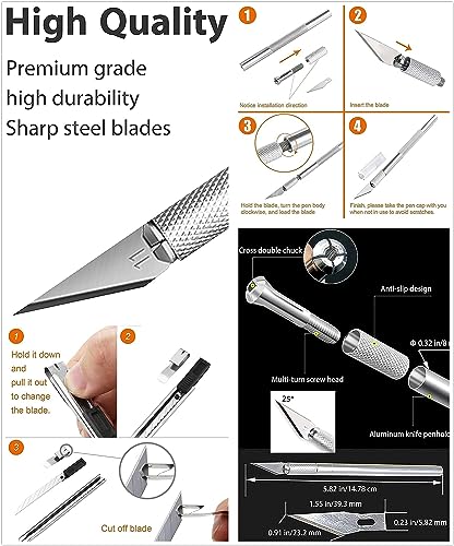 43Pc Exacto Art Knives & Blades Precision Carving Craft Knife Hobby Knife Kit 40 Spare Blades for Art Stencil Scrapbook