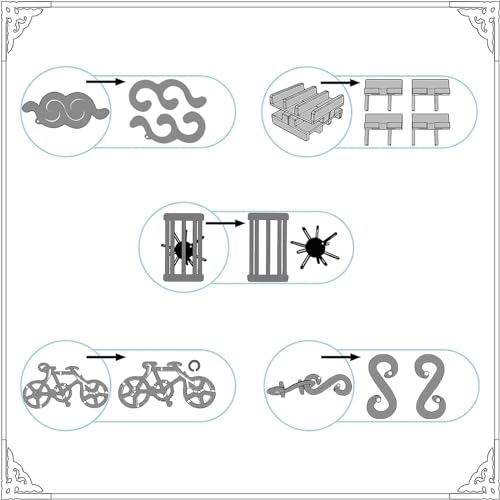 5 Pieces Brain Teasers Puzzles, Metal Cast Puzzle Games Toys, 3D Highly Difficult Adult Puzzles, IQ Logic Test Disentanglement Games for Teens, Puzzle Switch Games School Supplies(Cage Puzzle)