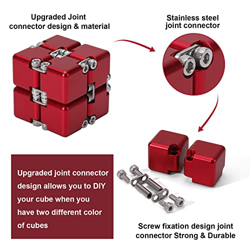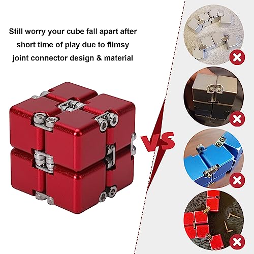 Aluminum Alloy Metal Infinity Cube Fidget Cube (6 Colors) Handheld Fidget Toy Desk Toy with Cool Case Infinity Magic Cube Relieve Stress Anxiety ADHD OCD for Kids and Adults (Red)