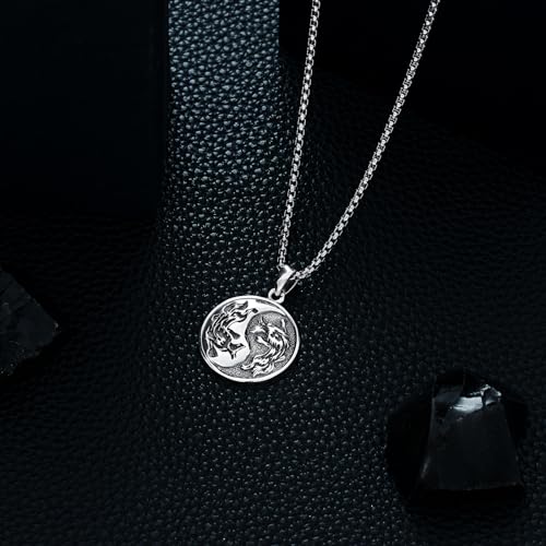 - ★ PRODUCT DIMENSIONS ★ Stamped with “S925″, this wolf pendant is made of 925 sterling silver. Hypoallergenic and harmless to sensitive skin. Color: oxidized silver. Chain: adjustable stainless steel rolo chain. Length: 22″ to 24”. 7/8″ (22 mm) wide, 7/8″ (22 mm) long. Pendant weight: 4.39 g. Packing: branded jewelry gift box.