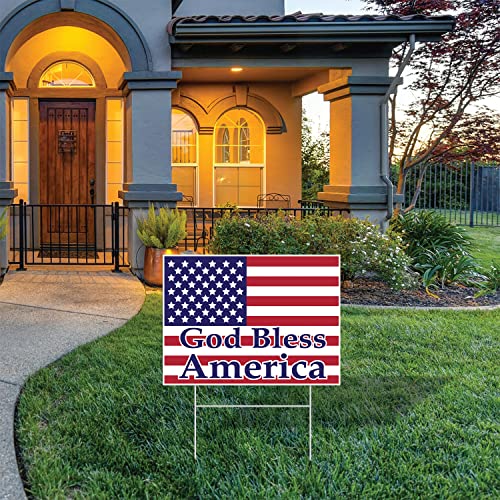 - INCLUDES: 1 Gold Bless America Yard Sign and metal “H” stake to decorate your lawn – Show your love for the USA by putting this Patriotic Lawn Sign in your yard