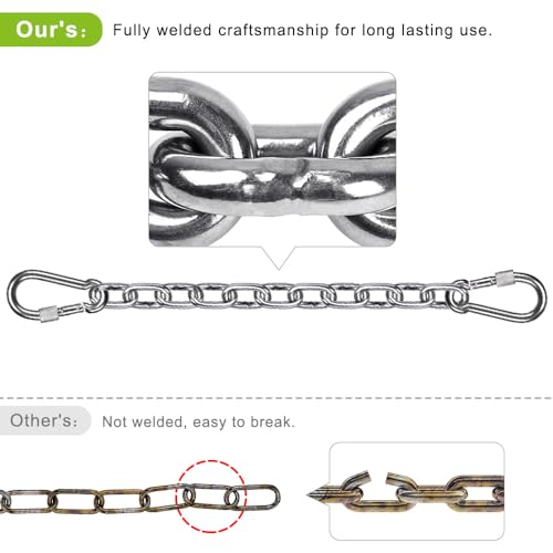 - Strong and Durable: Made of high-quality Stainless Steel, this kit can support up to 1000 LB of weight. The chains are corrosion-resistant, high-hardness, non-toxic, and pollution-free. The Stainless Steel carabiners are heavy-duty, smooth-operating, and secure-locking. You can rest assured that this kit will last for a long time and keep you safe and comfortable.
