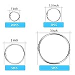 Binder Rings Assorted Sizes, 35pc,Loose Leaf Binder Ring, Book Rings(1,1.5,2,3inch), Ring Clips, Metal Rings for Index Cards, Rings for Flash Cards,Notebook Rings,Binding Rings