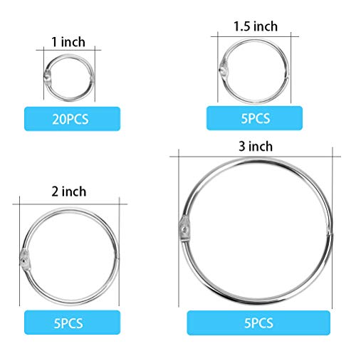 - Contains 3 inch x 5 pcs, 2 inch x 5 pcs, 1.5 inch x 5 pcs, and 1 inch x 20 binder rings