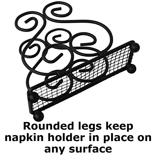 • Napkin Holders for Tables – Use it the way you need it, indoor or outdoor, at dining tables, kitchen counter tops, coffee tables, end tables, quest rooms, party, BBQ, RV or at a casual gathering; There is no limit on how you can use this classic scroll napkin holder