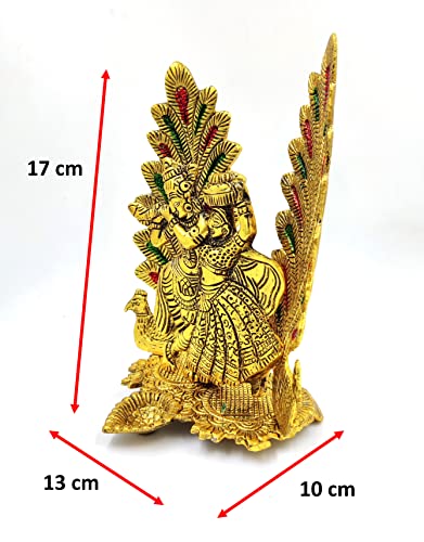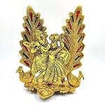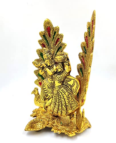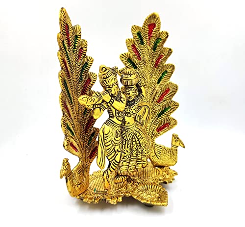 BRIH HAAT Metal Radha Krishna with Back of 2 Peacock Feather/Pankh @17cm