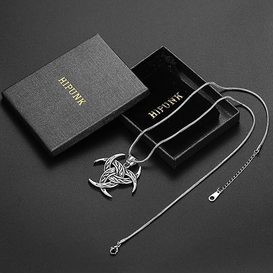 Be the first to review “Celtic Knot Necklace Viking Pendant – Celtic Norse Triple Odin Horns Crescent Moon of Oden Horn Necklace Mens 316L Stainless Steel Triskelion Amulet Pewter Tribal Protection Viking Triskele Jewelry” Cancel reply