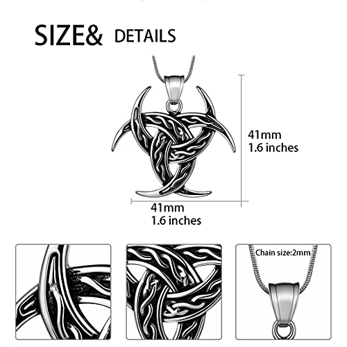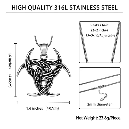 Celtic Knot Necklace Viking Pendant – Celtic Norse Triple Odin Horns Crescent Moon of Oden Horn Necklace Mens 316L Stainless Steel Triskelion Amulet Pewter Tribal Protection Viking Triskele Jewelry