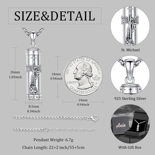 - 【St Michael Urn Necklace】Engraved with St Michael Protect Us.This solid sterling silver Saint Michael pendants are the perfect memorial gift for that special someone. Perfect for a First Communion gift,Valentines day gift,birthday gift, Easter gift,Fathers Day gift, wedding or anniversary Gift, this archangel urn necklace will make a gift he will cherish.