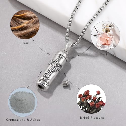 - 【Size】The archangel St Michael urn pendant: 8.5* 26mm (0.34 * 1.02 inch), silver Saint Michael cremation pendant weight: 6.7 g. Saint Michael memorial necklace is bright, highlighting the personality,which is simple and elegant, suitable for men, boys, husband,fathers,grandfather,brother,son,boyfriends, etc.