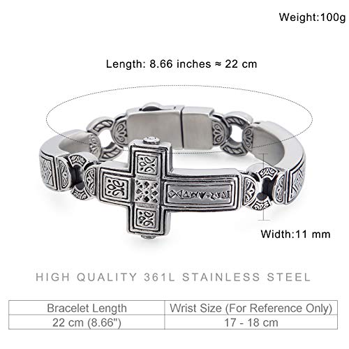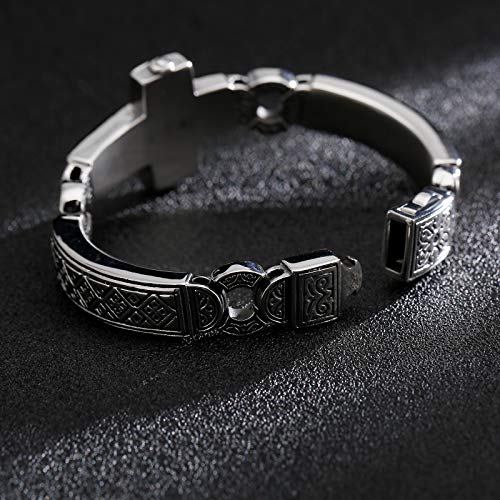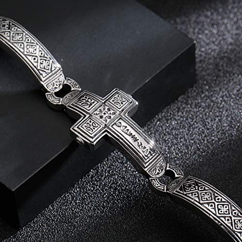 Cross Stainless Steel Bracelets Vintage Metal Bangle Heavy Mens Retro Punk Bracelets Cool Male Jewelry Armband (Silver, 8.66 Inches)