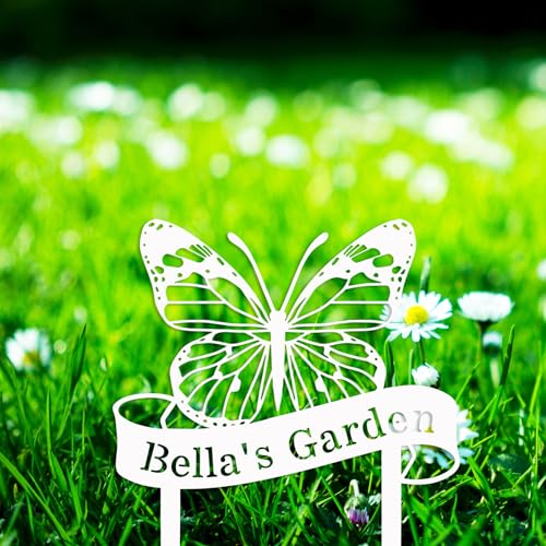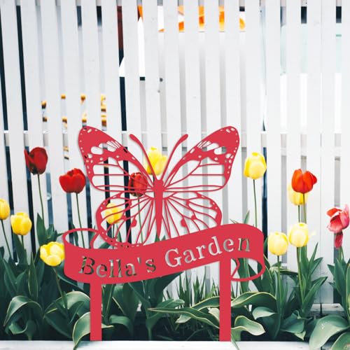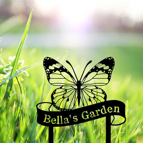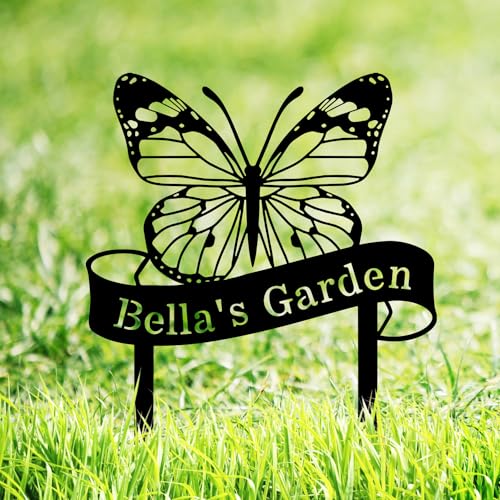 Custom Name Butterfly Sign, Personalized Butterfly Garden Sign with Stakes, Butterfly Garden Stake Metal Yard Art, Outdoor Metal Garden Sign, Customized Butterfly Garden Decor Sign