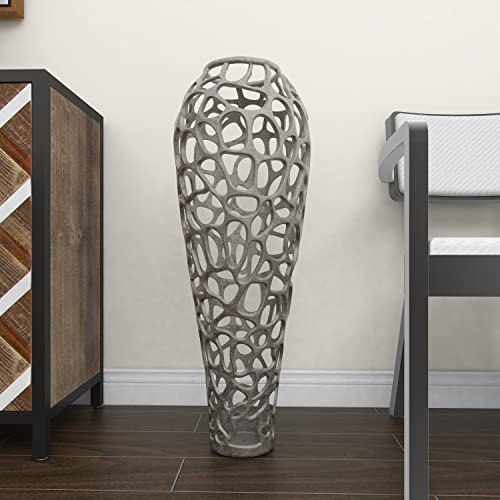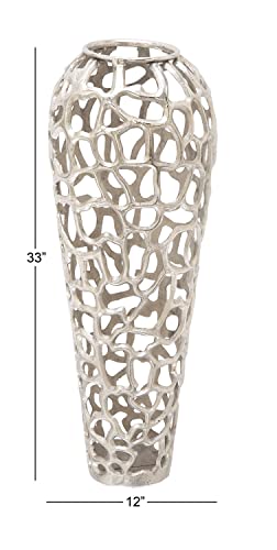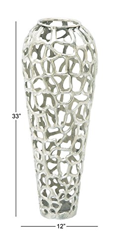 Deco 79 Aluminum Coral Vase, 12″ x 12″ x 33″, Silver