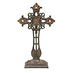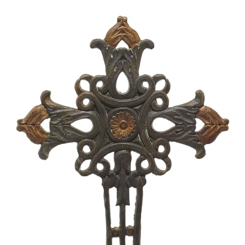 - FEATURES FINIALS CROSSES: Features a tarnished-finish black iron with copper brown wrought iron cross and a rectangular tiered base