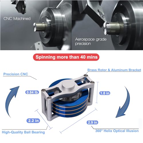 - All Metal Kinetic Desk Toys: Precision CNC-manufactured with a brass rotor and aluminum frame, making it a unique and eye-catching addition to any flat surface such as a desk.