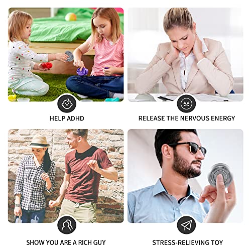 - ★ Feel it, hear it, hold it! Unique Dual bearings design (as a result, whole structure is much more sophisticated than normal fidget spinners); diameter 48mm, thickness 17mm, weight 112g (made by high grade stainless steel). Note: the center ring is driven by the outer ring, so you will feel and hear the metal on metal rubbing. This is part of the design, not a quality problem. If you need a silent one, buy a single bearing one.