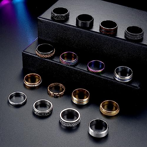 Fansilver 16PCS Stainless Steel Fidget Rings for Men Women Silver Gold Black Mens Rings Cool Male Band Rings Chain Spinner Rings Fashion Anxiety Rings Pack Size 7-13