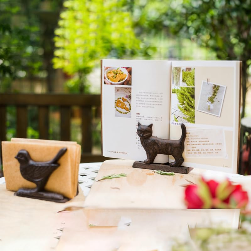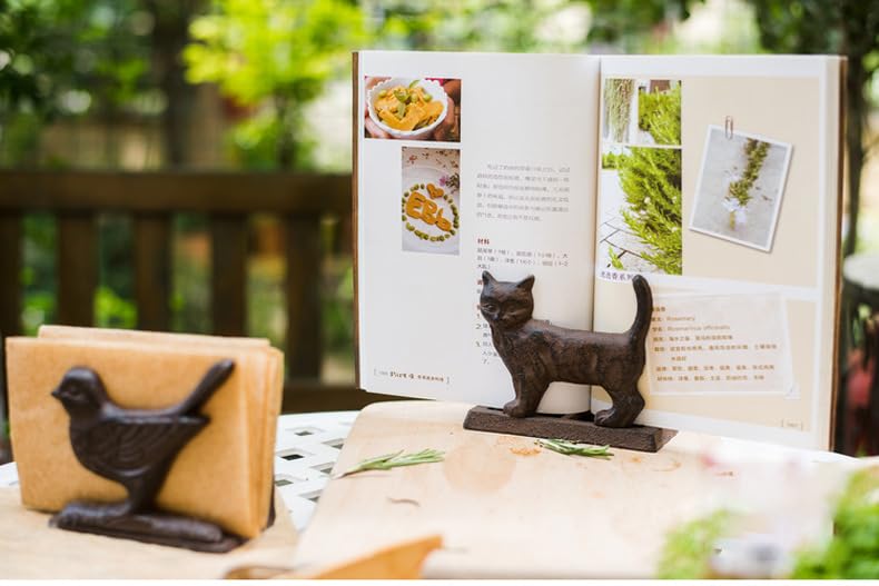 Farmhouse Metal Napkin Holder, Cast Iron Cat Napkin Holder for Kitchen Restaurant Ding Table, Kitchen Cookbook Stand Recipe Book Holder, Gift for Cat lovers (Bird)