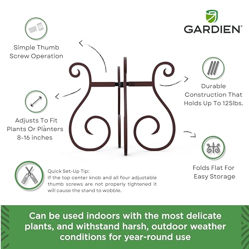 Gardien Plant Stand Indoor Outdoor, Adjustable Fits Up To 16 Inch Pots, Mid Century Modern Metal Planter Holder, Vase Stand, Bowl Stand, Birdbath Stand, Item Stand, Flower Pot Stand (Bronze)
