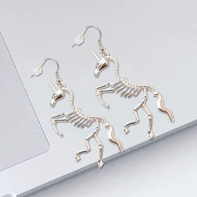 - Halloween Skeleton Earrings Unicorn Drop Earrings Creative Metal Ear Jewelry Party Accessory for Women.