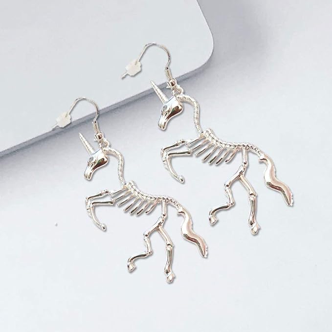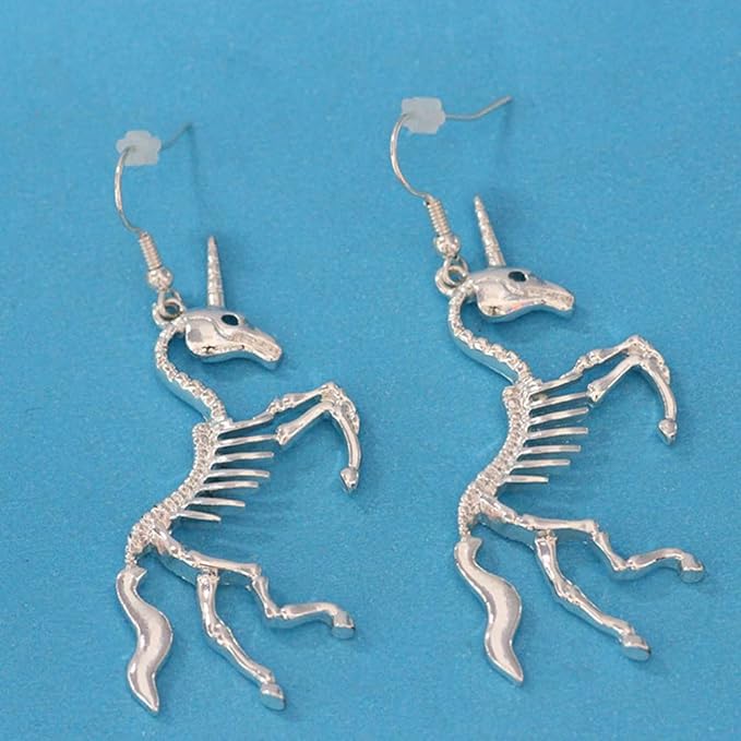 - Exaggerated Unicorn Skeleton Earrings Alloy Ear Drop Cartoon Shape Earrings Halloween Jewelry.