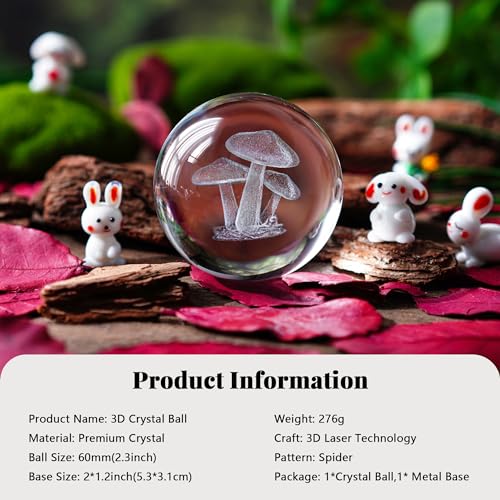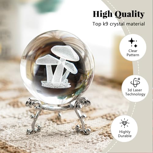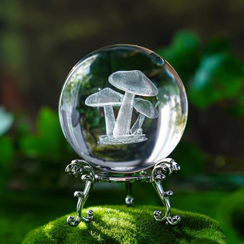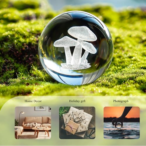 - 🍄Exquisite Craftsmanship: This 60mm glass decorative ball showcases a stunning 3D etched mushroom design, adding a touch of whimsy and elegance to your home decor.