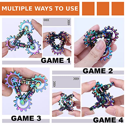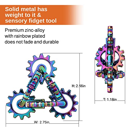 - SOLID METAL & INFINITY DESIGN – Unlike other fidgets, this solid metal infinity gear fidget toy has a nice weight and a cool iridescent finish, with unique design these rainbow gears are snapping together and moving in a unique way(not spin) that you can flip, twist and turn like forever. Wondering how it is possible? Find by yourself and have fun!