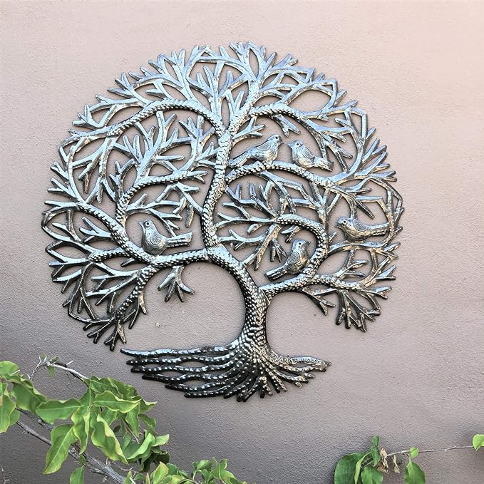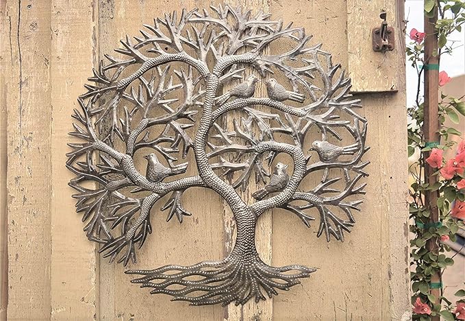 It’s Cactus Haitian Tree of Life Wall Decor, Global Art Made in Haiti, Oil Drum Metal Craft with Birds, Decoration for Kitchen or Anywhere in Home, 23 In. x 23 In. (Whispering Tree)