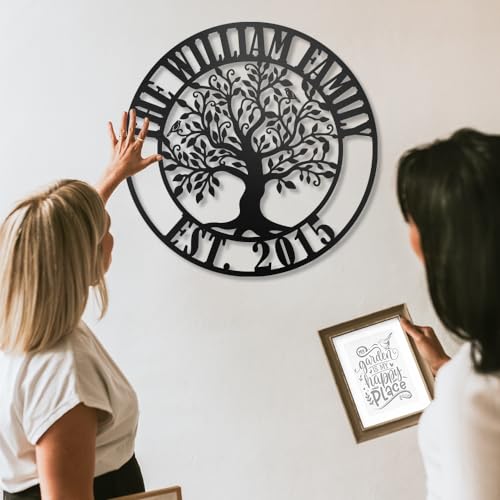 Last Name Metal Sign Customized, Personalized Tree Decoration Name Sign Metal Art, Personalized Gift for Wall Art Outdoor (24 inch)