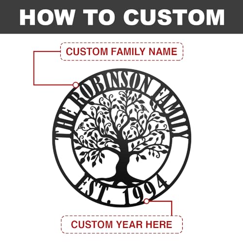 - 🌱🌱Personalized Words: Our metal door plates provide customized services, you can customize any words you need. It is an excellent gift for your families and friends. Trees represent vitality, this metal door sign can provide some decoration for your home/farm/garden, etc., adding some color and vitality.