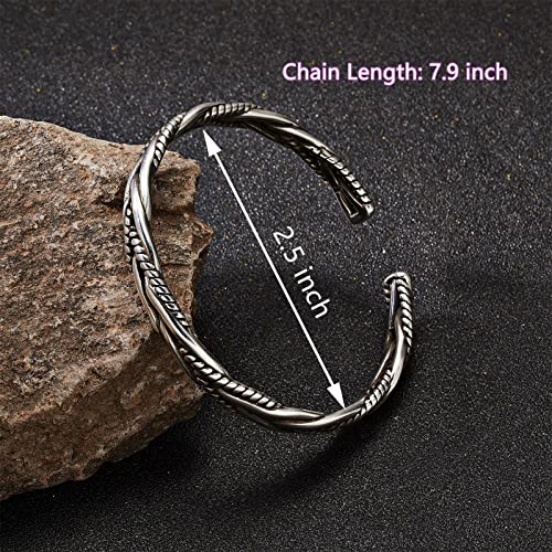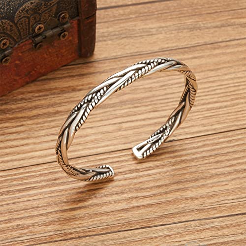 Men Silver Cuff Bracelet Jewelry Retro Twisted Braided Open Bracelet Gift
