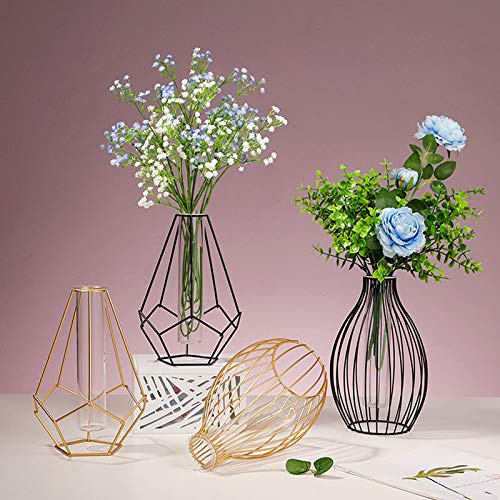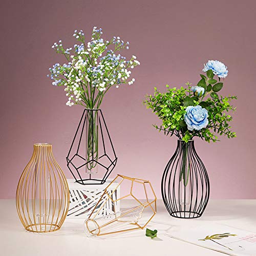 - BEAUTIFUL DECORATION: Just put the glass tube vase into the metal holder through the opening, and then pour water in one minute. Easy to put in or take out the glass container. Display flowers or fake flowers on the balcony, garden or terrace, and on the outdoor counter. Decorate your bedroom, living room, kitchen or other uses.