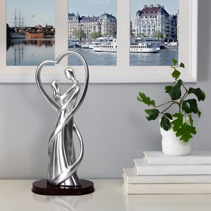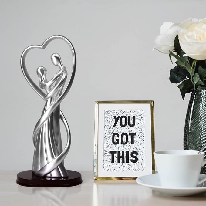 Modern Decor Couple Statue, Valentine’s Day Decorations Couple Sculpture for Home Decor, Wedding (Silver)