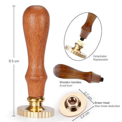 - Changeable wooden handle Stamp – This stamp will come with a wooden handle, it will protect your finger from burning when making wax seal. In addition when you want to change the design, you just need to screw off the brass head and change to the design what you need, easily done.